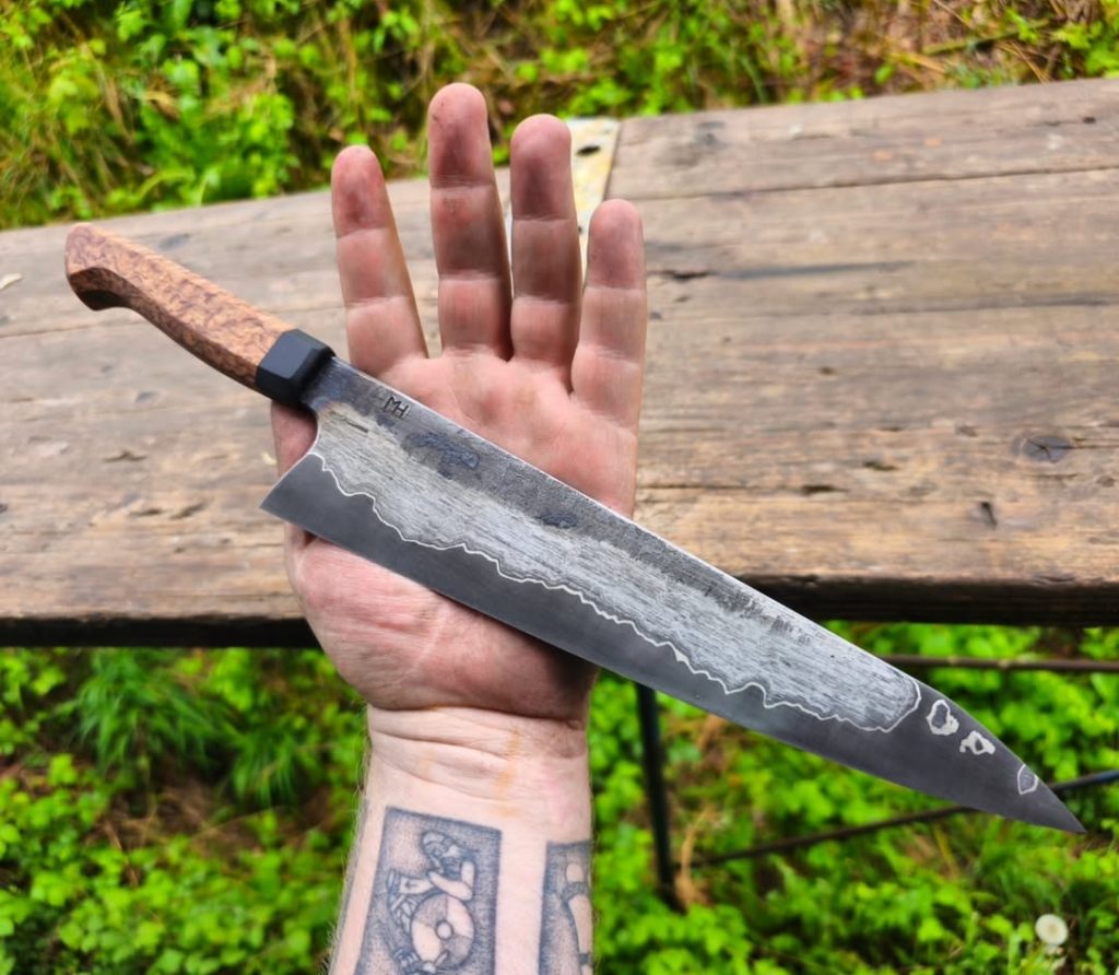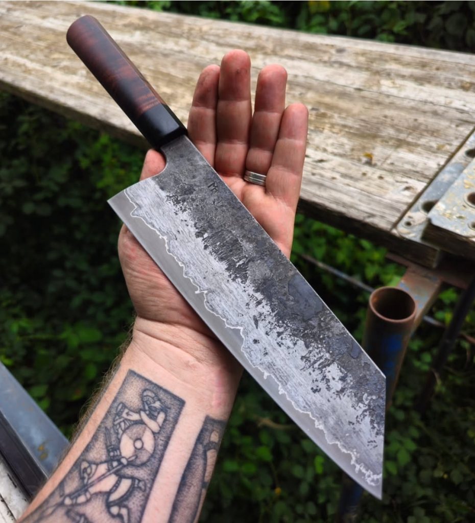 A gun to my head…ha-ha…. but seriously back when my business was quite small, I had a little Facebook group, where I would show some behind the scenes stuff. So, one time I put up two short videos and asked some questions, and I started getting all of this interaction, and I was able to sell the knives that were in videos. The following week, I didn’t post anything, and I started getting messaged, “where is this week’s video?” So, there was something there, a bit later I made a video to announce a small knife series, showing Simon and me making the knives. Then I started making some for YouTube like a 200mm santoku, or a machete I made for my dad. That was about 5-6 years ago, but after that I didn’t make any videos for a while. Then around two years ago I was at Atlanta Bladeshow, I was there with my wife, and Trollsky came to my table, he said man you are stupid, you need to be making videos, you have the face for it, you look the way people imagine a bladesmith should look, sort of a Viking look. My wife looked at me and said she had told me the same thing many times before. I was concerned about all the time for filming, editing, etc so I didn’t think I was going to do it.