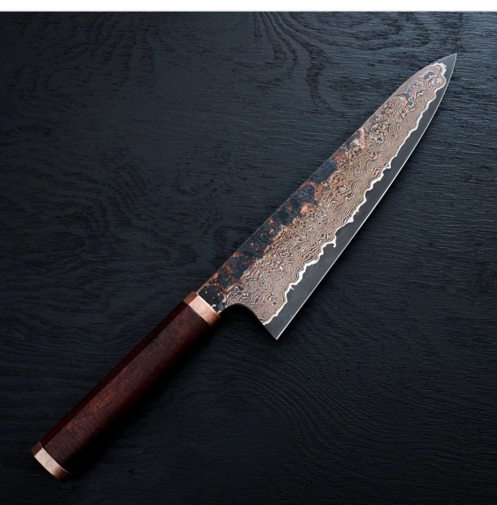 Yes, for sure, but that is where balance comes in. I like to put all the bells and whistles and push it right to the limit, but I want there to be balance. So, you need to know when is too much. Let’s say I have a crazy mosaic damascus blade, I will let the handle (using some great looking materials of course) be a bit softer on the eyes. I really spend a lot of thought on handles. I think for a lot of makers the handles are almost an afterthought, I would say I am almost the opposite, I will give more thought on the handle than the blade. If the blade is like a simple sanmai then I want to put extra details, inlays into the handle. But for me every knife should have an element that makes people say “this is freaking amazing”. But it shouldn’t be everything, because that will be too much and the overall blade will not look as good.
