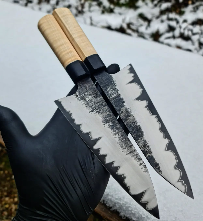I love sanmai, in general, I know that isn’t core steel, but I like my steels to be in sanmai. Many times, for the core I prefer 1.2419 as it is readily available it etches and performs well, my previous favorite was 1.2519 but sadly it was discontinued so the supply is running out.