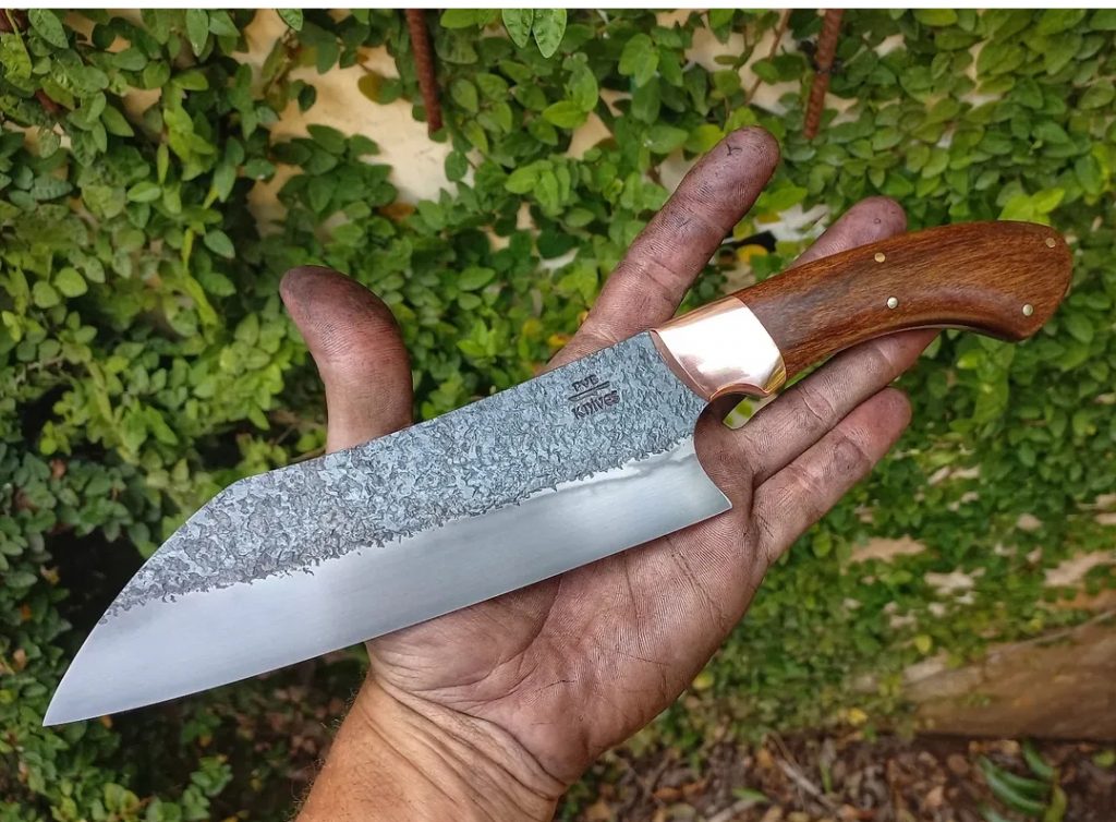 The steel was repurposed from an L6 frame saw blade, and the handle was Leadwood from our farm in Limpopo, where I grew up. The bug had bitten! I posted a photo of my attempt on Facebook just to show my friends, and would you believe it—I got an order for a mini cleaver soon after. I made the knife and sent it off, posted another picture, and got two orders. Suddenly I found myself investing in knifemaking tools and starting a small business!