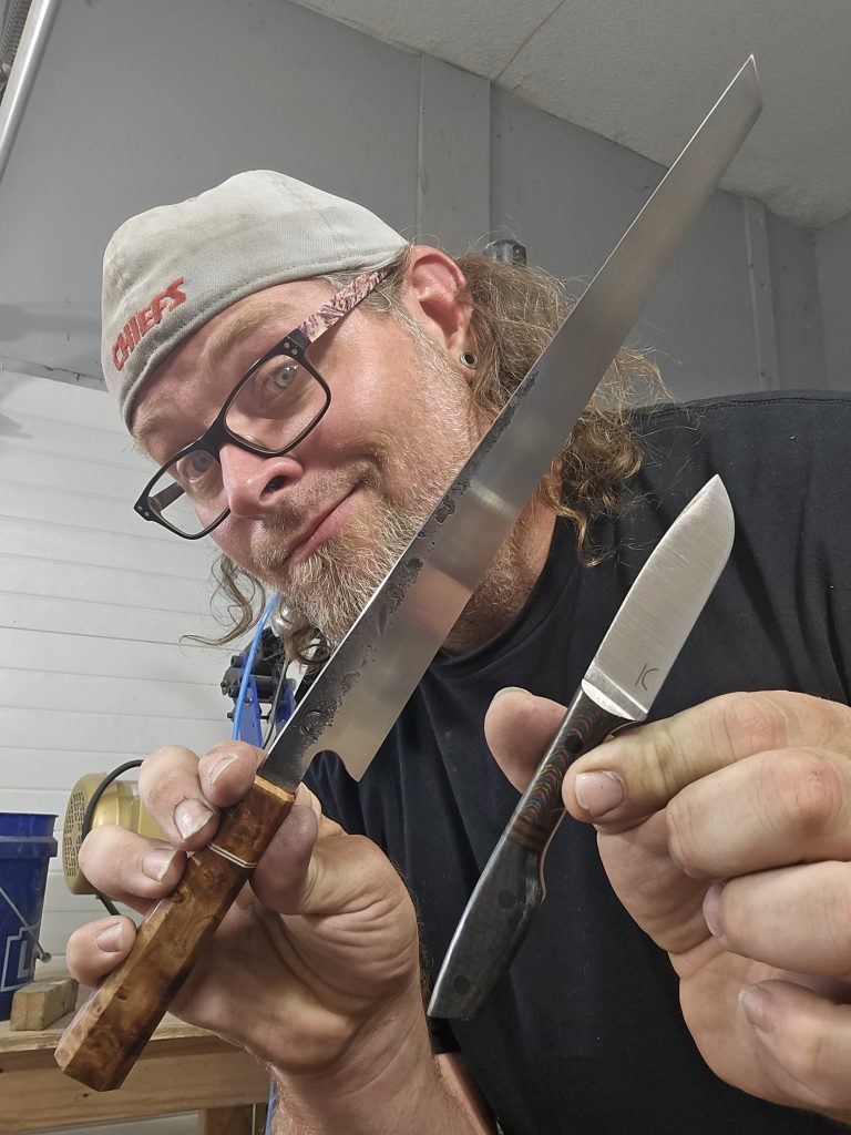 My name is Anthony Stratton and I’m a Kansas City based knifemaker who also specializes in handle scale designs. I have a background in engineering and management but currently run a lawn care business for my day job.