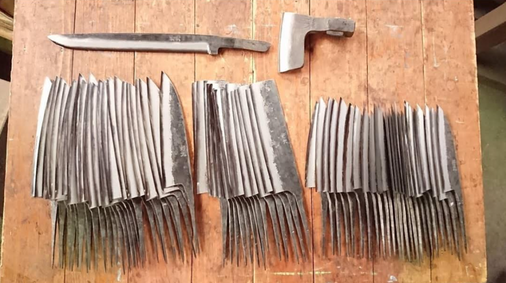 I have been influenced by various blacksmiths, but the most significant are Mr. Shoji Yoshida, the head of the main branch, Okahide, a saw smith from Kumamoto, and recently, it’s Mr. Taira of Morihiro Blacksmiths. That said, every blacksmith I know is a source of inspiration.
